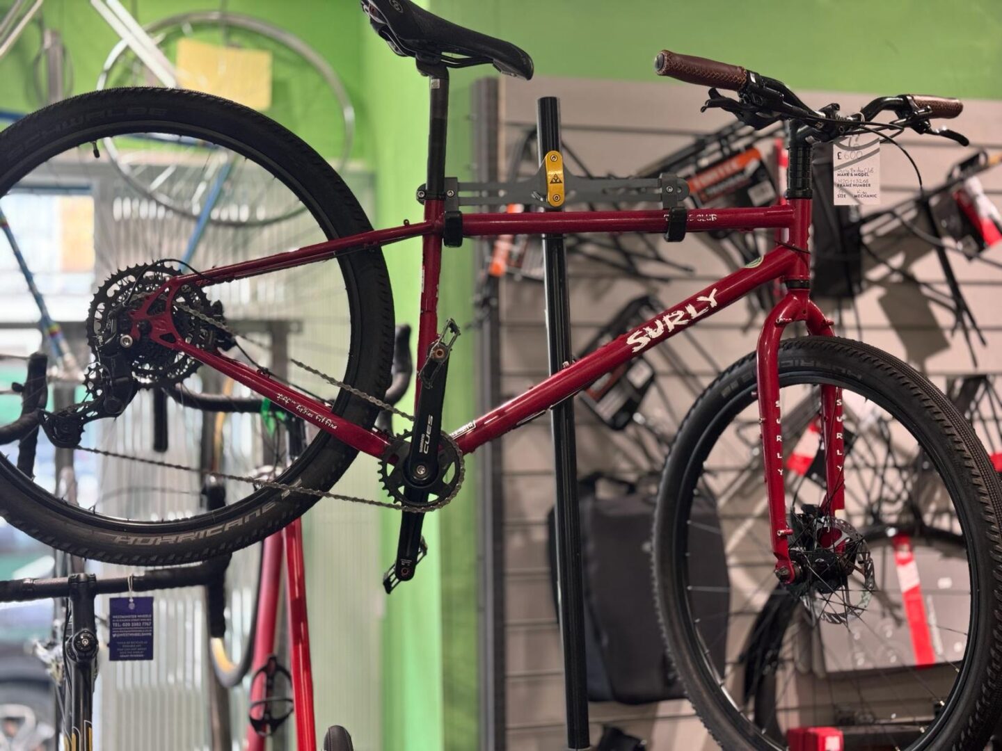 Check out out GLORIOUS refurbished ‘Bike of the month’. A fantastic Surly Bridge Club, small, with new Shimano Cues! In racing red, it’s ready to ride!